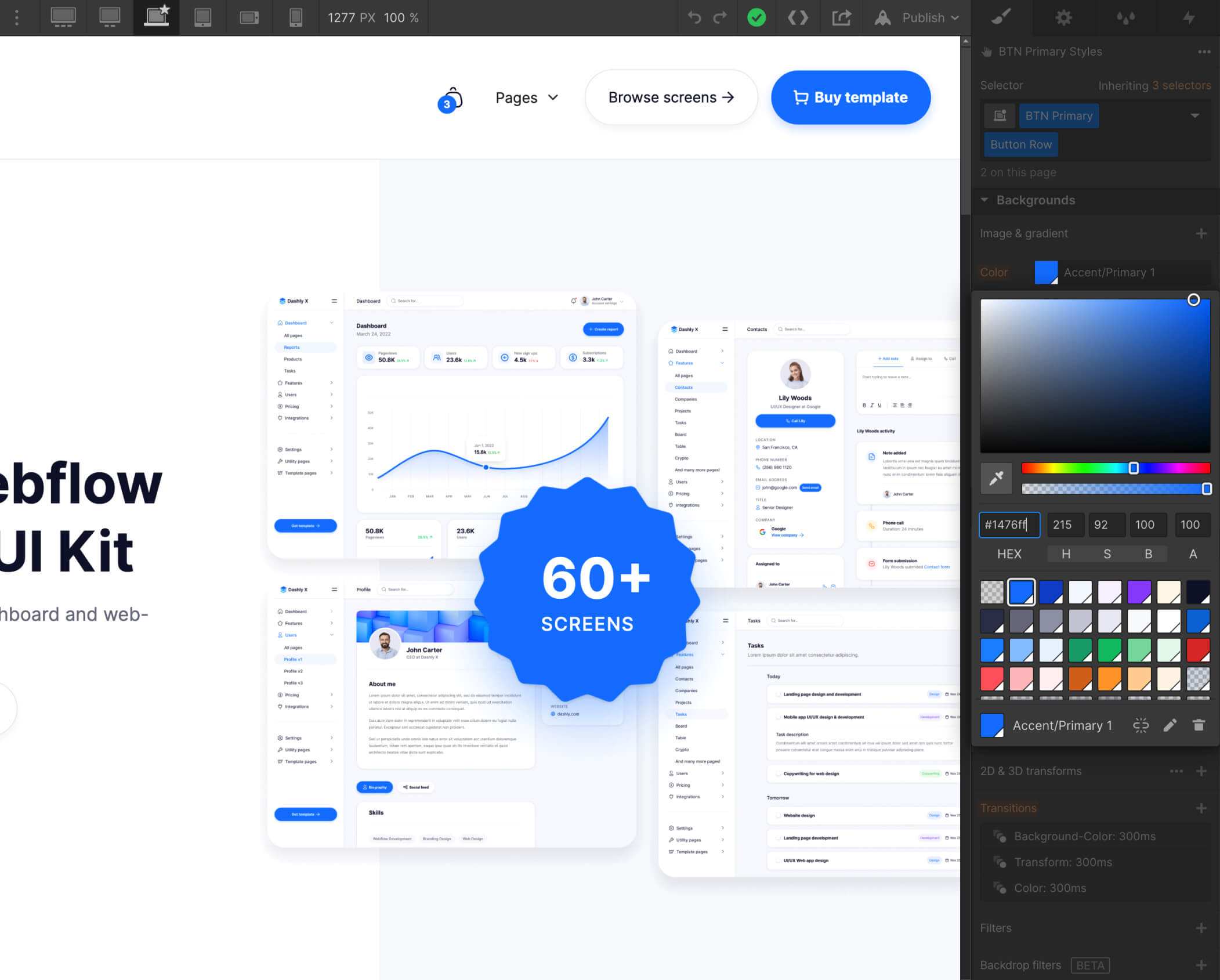 Thanks for purchasing the Dashly X template. In this brief guide we cover all the basics on how to edit basic elements (i.e. colors, fonts, CMS content, etc) from the Dashly X Webflow template.